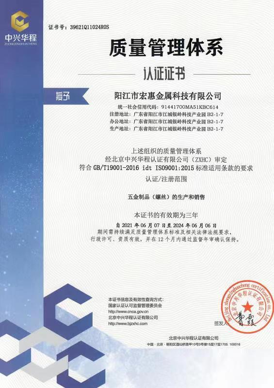 廣東宏惠金屬公司是家20多年一直專注鉆尾螺絲開發(fā)與生產(chǎn)的企業(yè),是國內(nèi)較早做鉆尾的廠家之一,同時也是國內(nèi)專業(yè)開發(fā)生產(chǎn)鉆尾螺絲的企業(yè)之一。 我司地址為于廣東省陽江市江銀嶺科技園距沈海高速白沙出口不到2公里,距陽江高鐵站也只有十余公里交通便利。 公司占地120畝,擁有超500臺套專業(yè)設計 生產(chǎn) 檢測設備。一個超200人的專業(yè)團隊,能夠嚴格按照ISO9001質(zhì)量體系要求生產(chǎn)符合GB DIN AS3566 ANSI JIS BS等標準的產(chǎn)品,生產(chǎn)銷售各種高品質(zhì)緊固件系列產(chǎn)品,為中高端客戶提供優(yōu)質(zhì)服務。也可按照客戶要求設計生產(chǎn)各種鉆尾,年產(chǎn)高品質(zhì)碳鋼 不銹鋼鉆尾螺絲2萬余噸.在各大客戶的鼎力支持下產(chǎn)品暢銷全國,并遠銷亞 非 拉 歐等地,在這20多年發(fā)展的道路上我司堅持“以質(zhì)量求生存,以信譽求發(fā)展”的精神理念不斷完善公司體系。